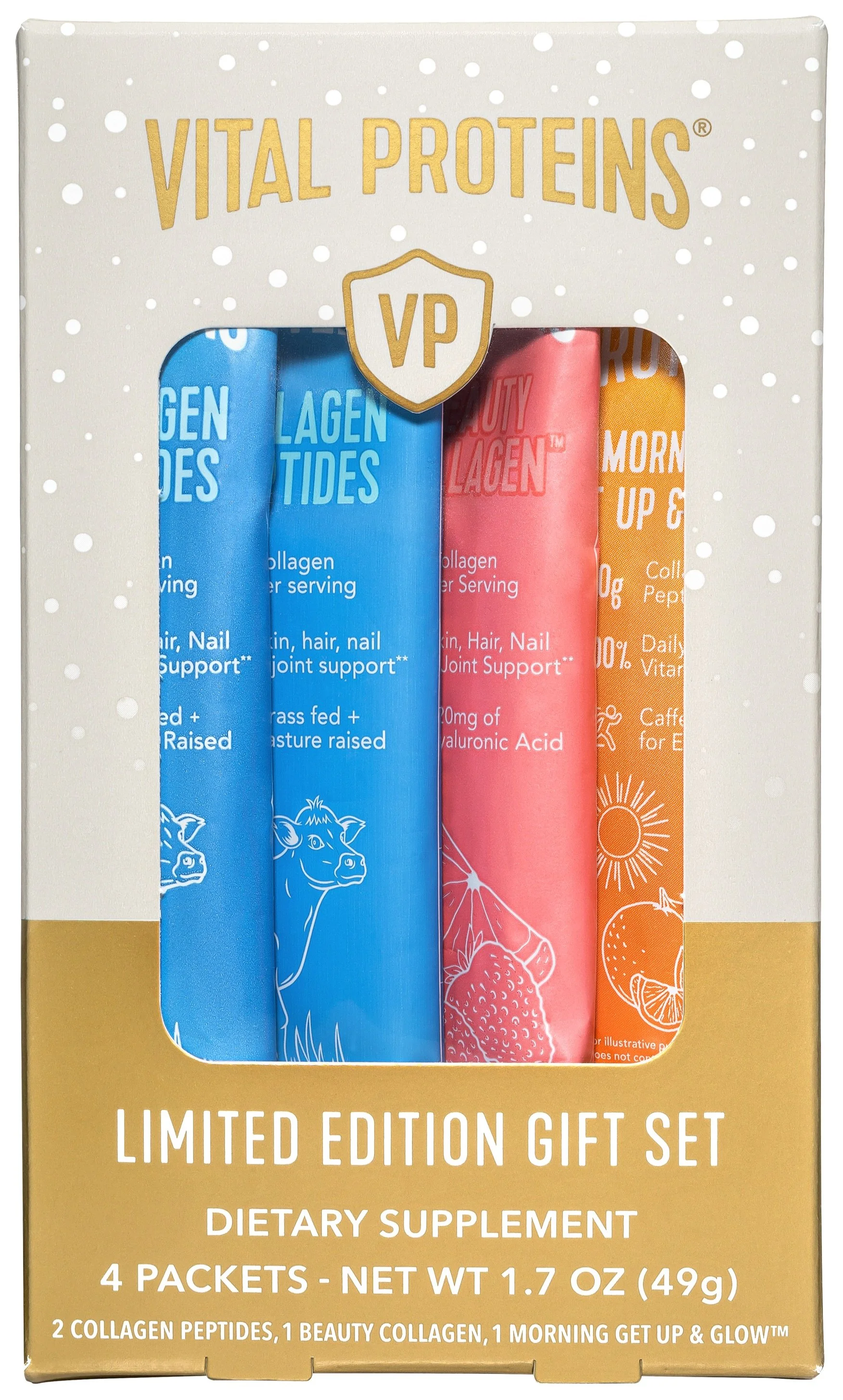 At Vital Proteins, a significant aspect of my role centered on refining existing packaging to incorporate updates and ensuring a cohesive visual identity across the product portfolio. Additionally, I had the privilege of designing special edition sampler packs tailored for gifting, collagen bars, and over 15 influencer/PR mailers. Below are select examples of my work in this capacity.